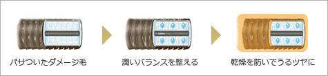 濃厚クリームで髪を包み込むと、潤いヴェールが乾燥や湿気から髪を護ってまとまりと指通りが続きます。